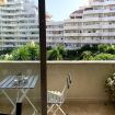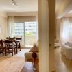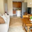 El apartamento Coracha con 53 m², está situado en la planta de entrada junto a la recepción del complejo. Inteligentemente distribuido para aprovechar cada estancia, al entrar hay un pequeño recibidor que conecta con el salón, a la derecha tenemos la habitación principal con cama de matrimonio, y el baño con ducha. El salón dispone de amplio sofá convertible en cama, mesa para 4 comensales y cocina americana equipada y salida directa a un agradable balcón con vistas a los jardines y el mar. El apartamento cuenta con AC en el salón y Wi-Fi.