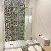 La vivienda cuenta con tres habitaciones y dos baños. El salón-comedor y la cocina ocupan el espacio central de la vivienda, con grandes ventanales que dan a un patio interior, inundando de abundante luz natural y un toque de sofisticación.